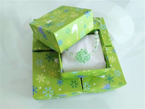 5-Pack Origami Boxes: Green Winter Pattern (2.25" X 2.25" X 1")