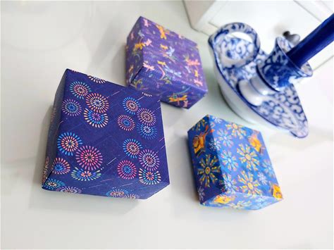 Washi Origami Gift Box: Japanese Chiyogami Paper, Flower Pattern (Set Of 2)