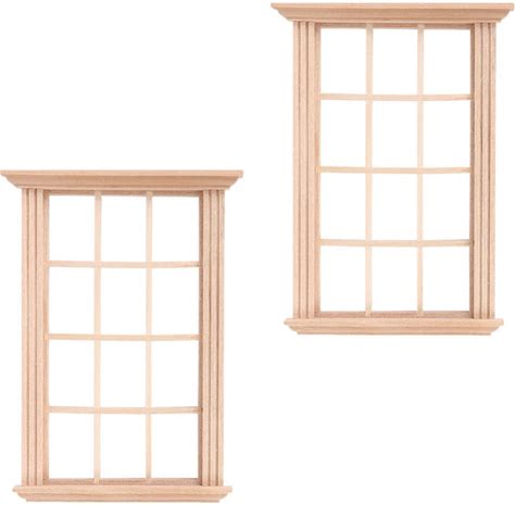 DOITOOL 2Pcs 1/12 Scale Mini Doll House Window Frames Wooden Window Model For Dollhouse Accessories Home Decoration