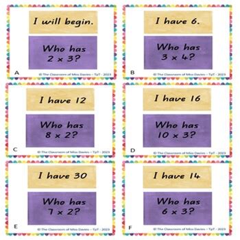 I Have Who Has Multiplication Game Printable Multiplications Fact Daily Practice