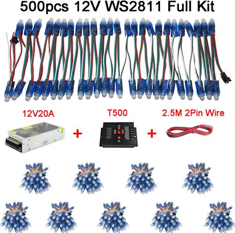 WS2811 5V 500Pcs RGB LED Pixels Light Individually Addressable 12mm Diffused Digital Full Color LED Pixel Module Light For LED Screen Wall Advertising Sign Board IP68 Waterproof(5V RWB Wire 500Pcs)