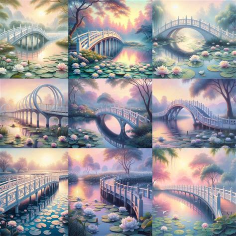 Pond Bridge Seamless Pattern Set (Digital Download)