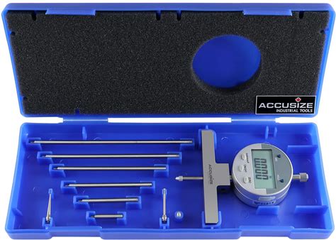 Accusize Industrial Tools - 0-22 Inch Electronic Digital Depth Gauge, Inch/Metric/Fractional, 2 Extra Points For Small Hole Applications, P103-0188