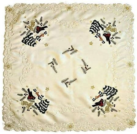 Doily Boutique Christmas Tablecloth Or Table Topper Square Embroidered With Red Cardinals On Antique Fabric, 36 Inches
